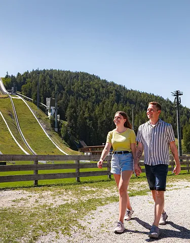 Around the Arena365, you’ll find scenic panoramic paths perfect for leisurely walks, short hikes, or relaxed bike tours – ideal for soaking up Seefeld’s surrounding mountain scenery. A visit to the freely accessible World Championship Tower is especially rewarding, offering impressive views of the Toni Seelos ski jumps and the Seekirchl through the Swarovski telescope. Whether in summer or winter, being active in the fresh mountain air is simply part of the experience here.