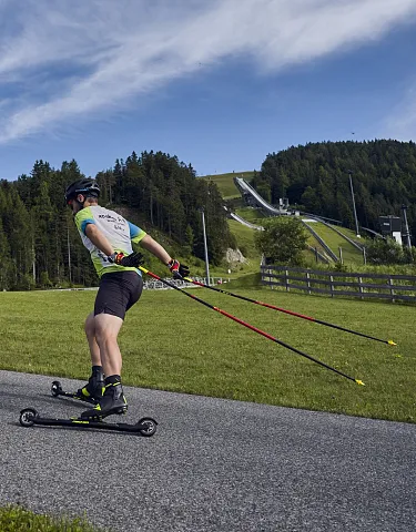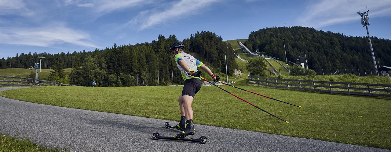 Seefeld is the perfect place to practice Nordic sports even in summer. The unique 3.6 km long and 3 m wide roller-ski track, with adjustable length and elevation profile, offers professional athletes optimal endurance training in the great outdoors. Connected directly to the track is the modern biathlon range with 12 small-caliber shooting lanes.