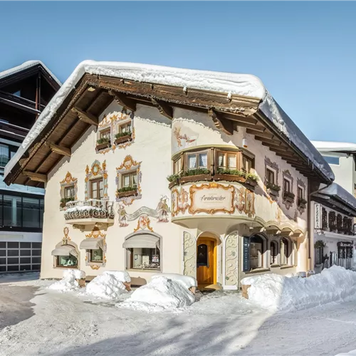 Der Standort des Geschäfts ist seit fast 90 Jahren derselbe - im Tiroler Schmuckkastl, berühmt durch seine Lüftlmalerei, gestaltet vom renommierten Garmischer Maler Isidor Winterholler.