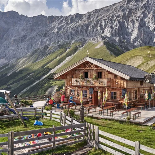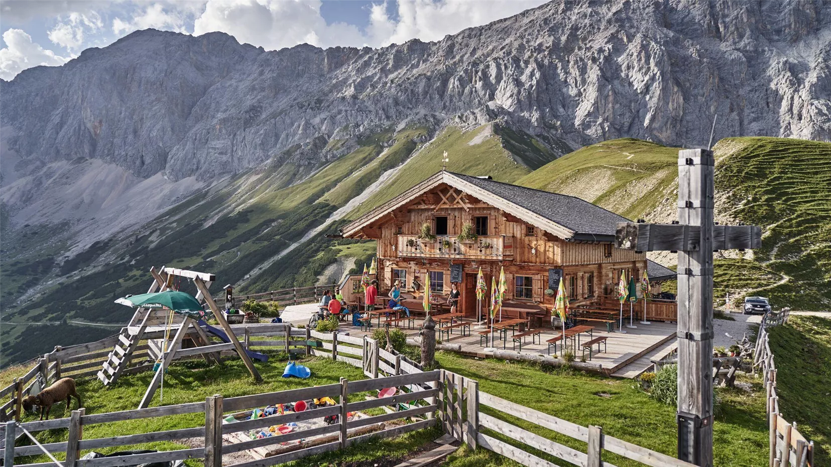 Die malerische Rotmoosalm auf 2.030 Metern Seehöhe ist die höchstgelegene Hütte im Wettersteingebirge und ein besonderer Einkehrtipp für Wanderer und Biker. Nach einem Lawinenabgang wurde die Almhütte 2011 vollständig neu errichtet und bietet neben einem echten Almabtrieb mit gut 230 Rindern und 30 Pferden hier auch eine Übernachtungsmöglichkeit für bis zu 14 Personen. Seit 34 Jahren wird die Rotmoosalm von der Familie Neuner bewirtschaftet. 2021 übernahmen Evi und Florian die Alm von Florian’s Eltern. Für Biker sind Unterstell- und Absperrmöglichkeiten für Räder vorhanden. Die Rotmoosalm ist ab Mai nur während der Sommermonate geöffnet und begrüßt erschöpfte Wanderer dann mit traditioneller Hausmannskost, frischgezapften Köstlichkeiten und herrlicher Bergluft auf der großzügigen Sonnenterrasse.