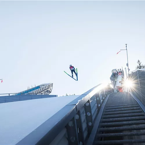 Entdecken Sie die Toni Seelos Schanze in Seefeld im Rahmen einer spannenden Führung. Erleben Sie hautnah, wo sich (inter)nationale Top-Athletinnen und –Athleten beim Training und in Wettkämpfen messen. Mit dem Schrägaufzug fahren Sie bequem zum Schanzentisch auf 1.284 m Seehöhe. Spüren Sie das Kribbeln, wenn Sie an dem Ort stehen, von dem sonst die Skispringer:innen abheben und lassen Sie den Blick über die imposante Bergwelt schweifen.
