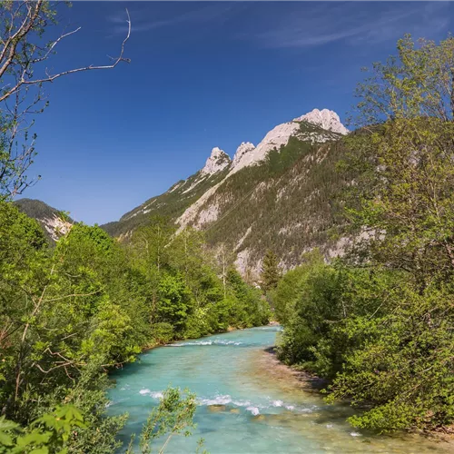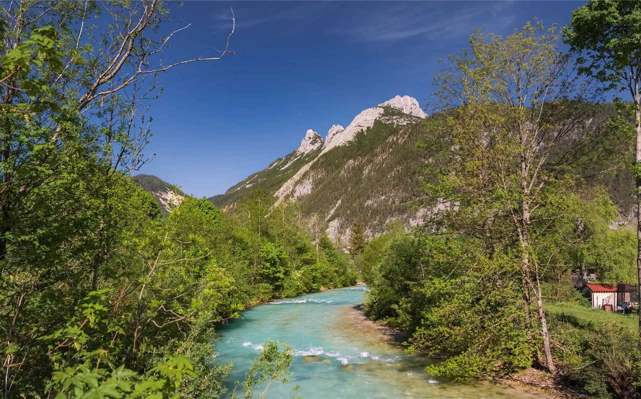 Vom Naturpark-Infozentrum in Scharnitz führt der Weg zunächst entlang der Hinterautalstraße bis zur Kirche im Ortszentrum. Dort zweigt der Weg nach links ab und führt gleich darauf nach rechts in den Hirlanda-Ellmann-Weg. Dieser idyllische Abschnitt verläuft ruhig und lädt zu einem entspannten Spaziergang ein.