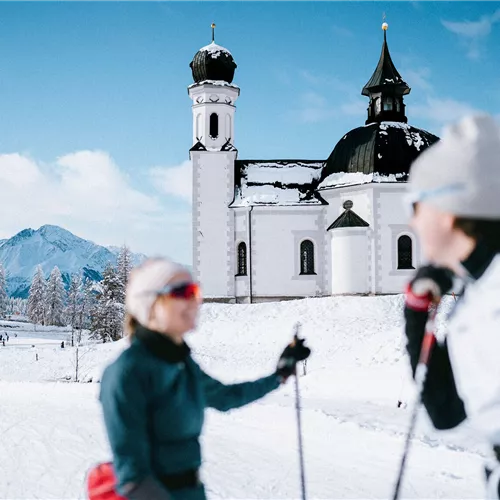 Direkt vor dem Seekirchl gelegen, bieten mehrere parallele Klassikspuren auf ebenem Gelände ideale Bedingungen für den Einstieg ins Langlaufen. Perfekt zum Üben, Aufwärmen und Techniktrainieren – mit viel Platz in lebendiger Atmosphäre.