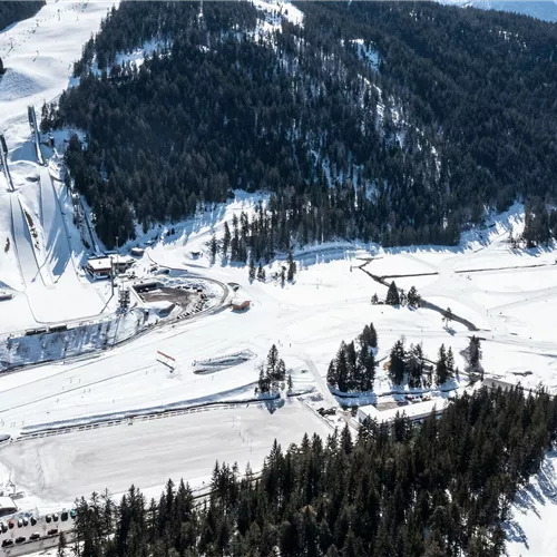 Unterhalb der Arena 365 gelegen, erreicht man dieses Übungsgelände nach einem ersten sanften Anstieg bis zum Welcome-Bogen und einer anschließenden kurzen Abfahrt. Direkt dahinter eröffnet sich eine kompakte Trainingsfläche mit einer rund verlaufenden Loipe, die sich ideal für wiederholte Runden eignet. Perfekt zum Üben und Stabilisieren der Technik.