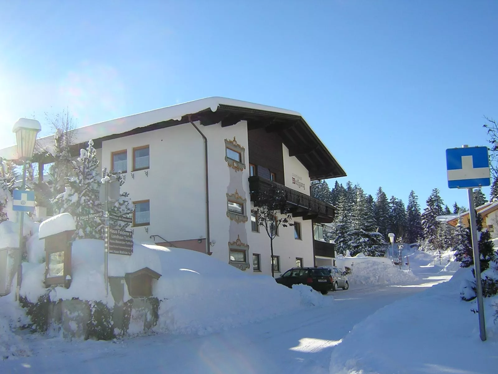 Unser Haus liegt zentral aber ruhig am Waldrand. Zum Alpenbad 10 Minuten, zum Skilift 5 Minuten. Wir haben 4 neue 2-Raumappartements mit Balkon. Alle mit separatem Schlafzimmer, Safe, Fön, Sat-TV, Parkett. Küche mit Mikrowelle. Großes Badezimmer mit Duschkabinen.