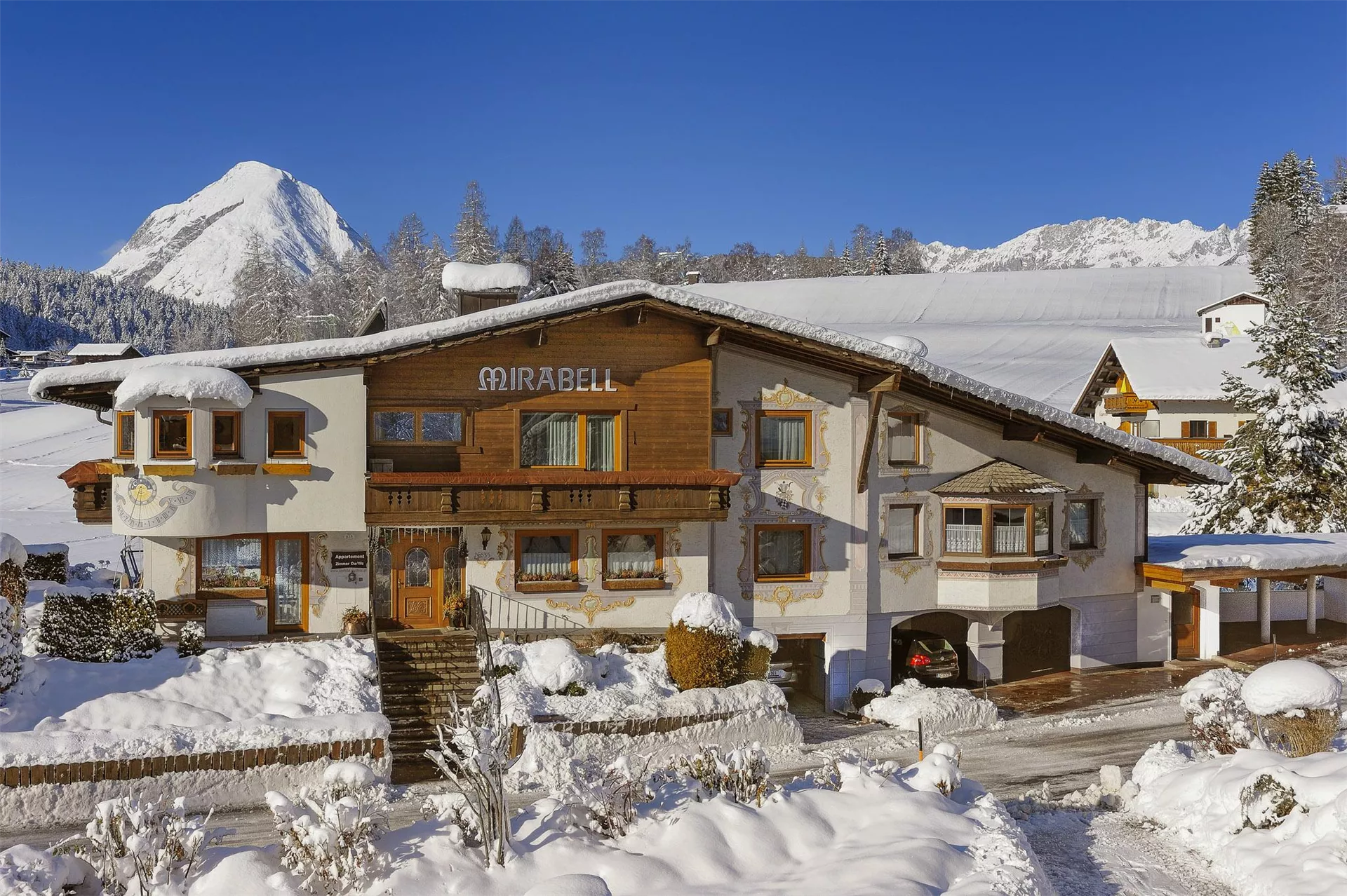 Verbringen Sie einen unvergesslichen Urlaub im Haus Mirabell in Seefeld, Tirol! Unsere gepflegte Pension befindet sich nur 3 Gehminuten von der malerischen Fußgängerzone entfernt und ist die perfekte Wahl für Aktivurlauber und Erholungssuchende.