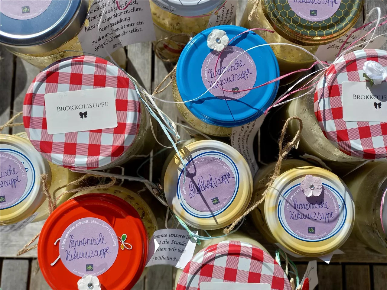 Die Suppen wurden liebevoll gekocht und bereits in Gläser abgefüllt, damit ihr sie gemütlich zu Hause genießen könnt.