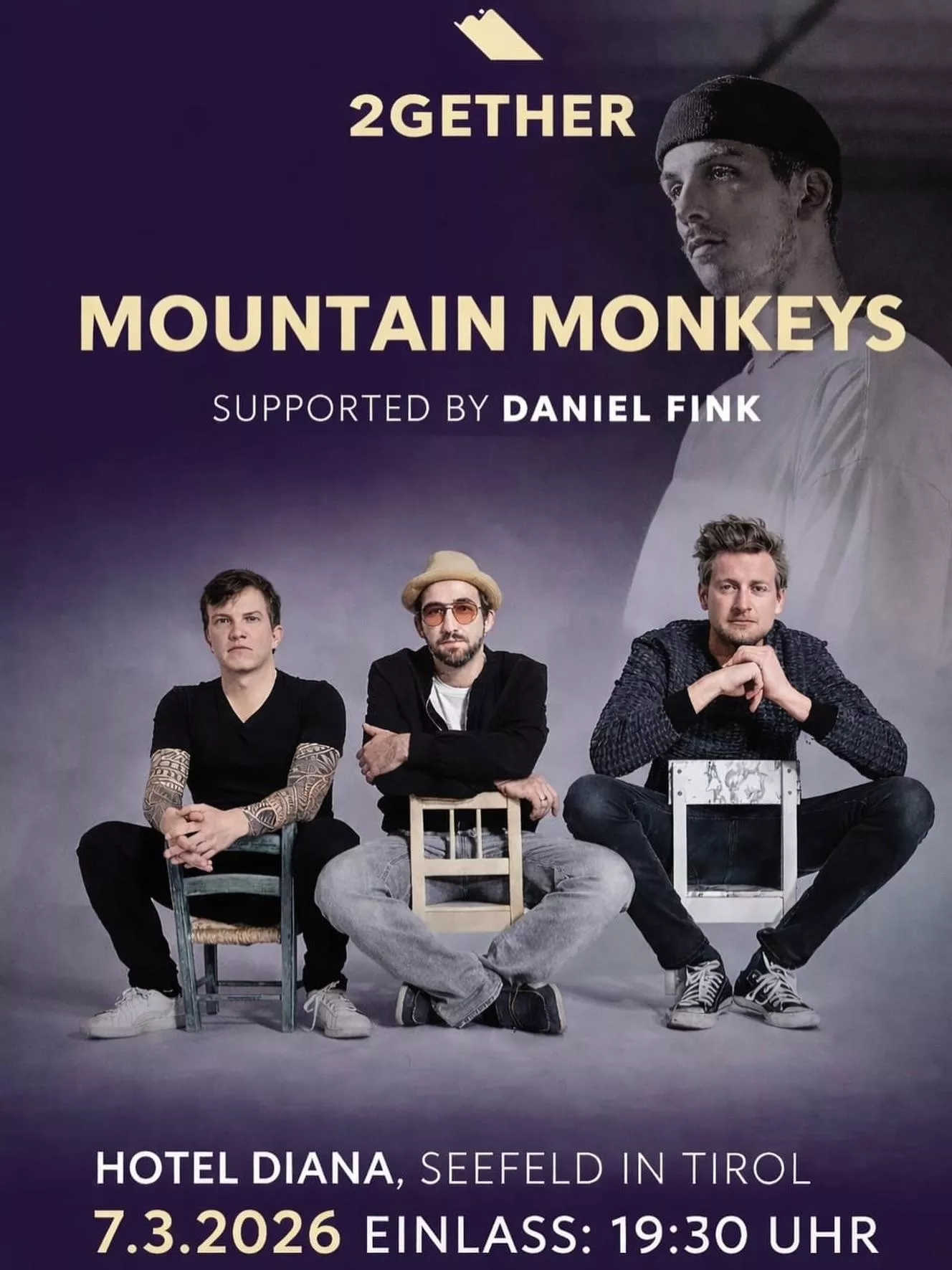 Die Mountain Monkeys begrüßen Sie am 7.3.2026 im Hotel Diana in Seefeld mit Live-Musik und guter Stimmung.