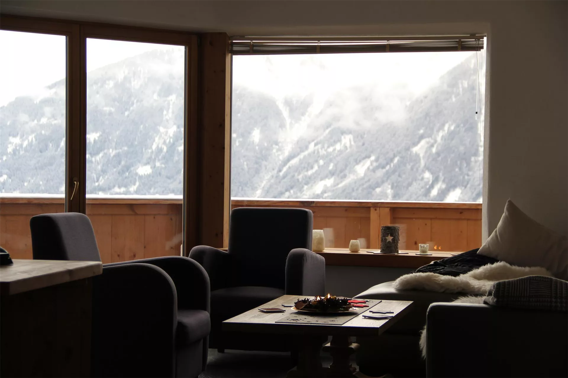 The 96 m² modern Riepenwand flat is located in the Berghof residence in Mösern with breathtaking views of the mountains and the Inntal valley 600 metres below.