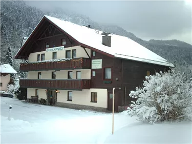 The Pension Arnspitze under family management in a unique, quiet location of Scharnitz in the immediate vicinity of hiking trails and cross-country ski trails. Our house offers you a pleasant stay in well-kept, generously equipped rooms with bath or shower, WC, TV, wifi and balcony with a wonderful view of the surrounding mountains. In our breakfast room you will find a rich breakfast buffet with Tyrolean delicacies. A large garden and a private car park are also available for our guests.