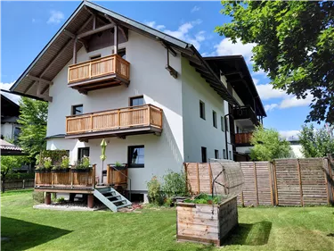 The 110 sqm vacation apartment features a separate entrance and is located on the 1st and 2nd floors of our private house. All rooms are modern and stylishly furnished. The large, bright kitchen with dining area and open passage to the living room is the heart of the apartment. Two south-facing balconies invite you to relax and offer views of the surrounding mountains and the golf course.