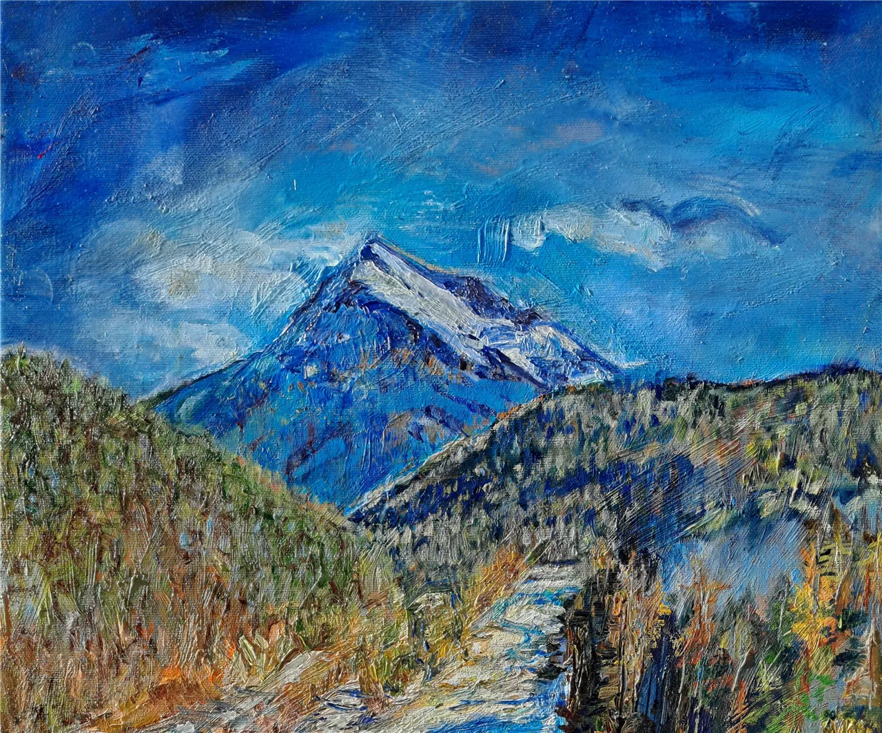 Michaela was born and raised in the Karwendel and lives near the Isar. She draws her inspiration from the mountains and waters that surround her. Inspired by light, color, and emotions, she creates works that not only capture impressions from nature and homeland but also skillfully bring the uniqueness of the moment to the canvas with oil painting. Her paintings reflect her joy in experimenting with color and form and navigate the intersection between Impressionism and Expressionism.