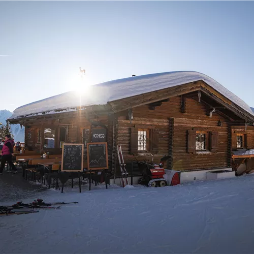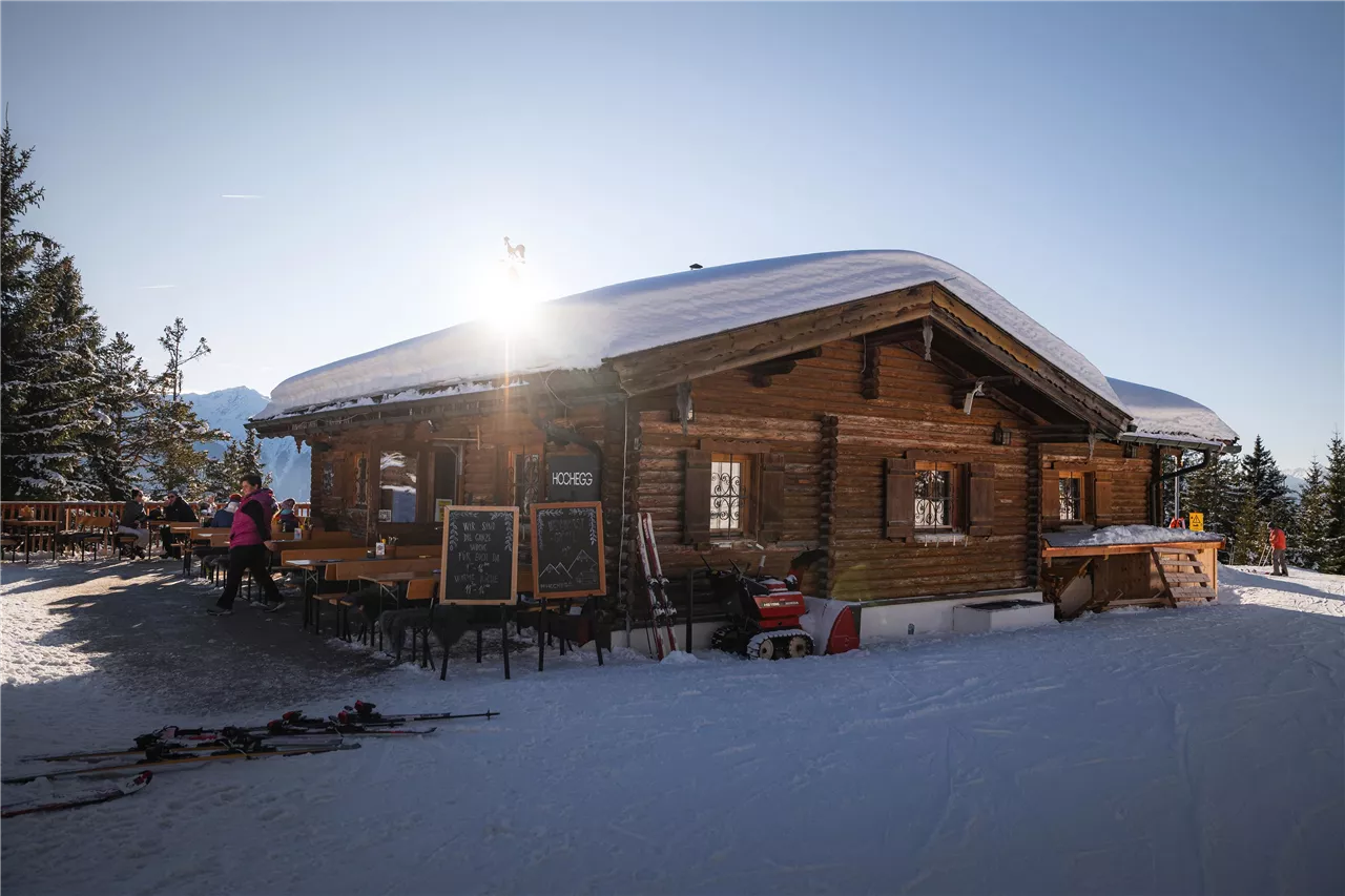Directly on the Forststraße, halfway to the Rosshütte, lies the rustic Hochegg Alm (1,545 m). On the large sun terrace with a panoramic view of the region, one can wonderfully relax with typical Tyrolean delicacies, refreshing drinks, and a digestif. While parents enjoy the break, children can romp on the small playground. Just a 10-minute walk away is the Kaltwassersee. The lake is beautifully nestled in the mountains, and the benches along its shore invite you to rest with a scenic panorama.