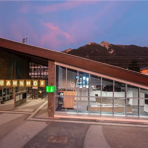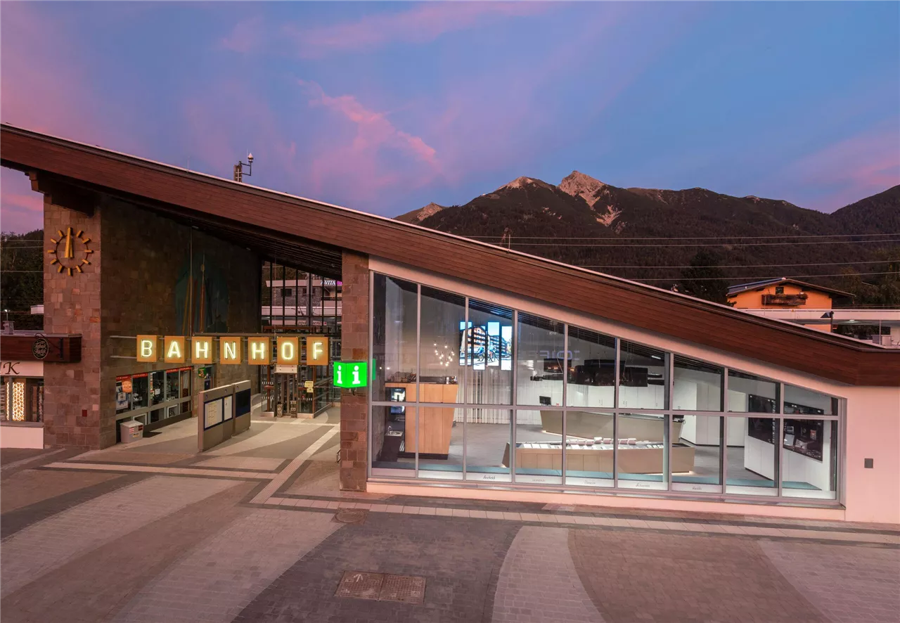 The new railway station building is the epitome of modernity and sustainability and provides an optimum service for travel in the region. It has weather-protected platforms, a bus terminal (for buses to Mösern, Leutasch, Reith as well as ski bus service), a taxi rank, an underground garage (2 min. walking distance from the station), 2 electric charging points, covered bike racks and a Park & Ride area. Over 50 trains (ICE, REX & S-Bahn) stop here on weekdays and at weekends, including direct connections to Munich, Dortmund, Hamburg and Berlin, with an average of 2,000 passengers per day.