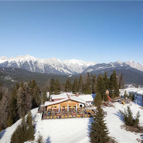 The welcoming Sonnenalm (1,500 metres) is located high above Seefeld at the top of the Gschwandtkopf and as well as the unforgettable view from the sun terrace, you can enjoy some delicious traditional Tyrolean dishes there.