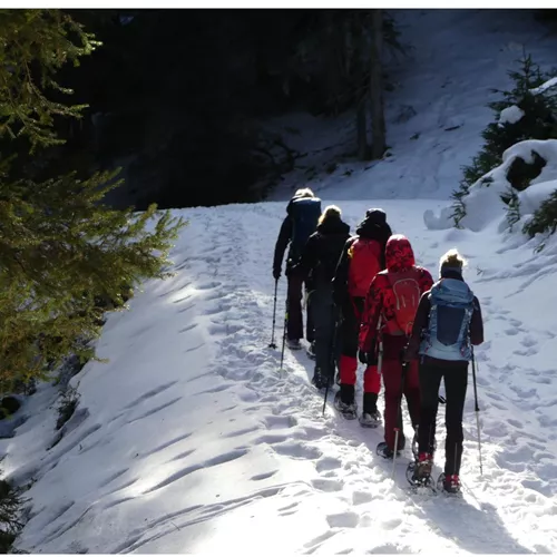 Together with Carolin Mittendorfer – a state-certified mountain guide, fitness, and yoga instructor – you will explore the quiet side of the mountains. Every step through the sparkling snow strengthens body and mind, while the clear mountain air provides fresh energy.
