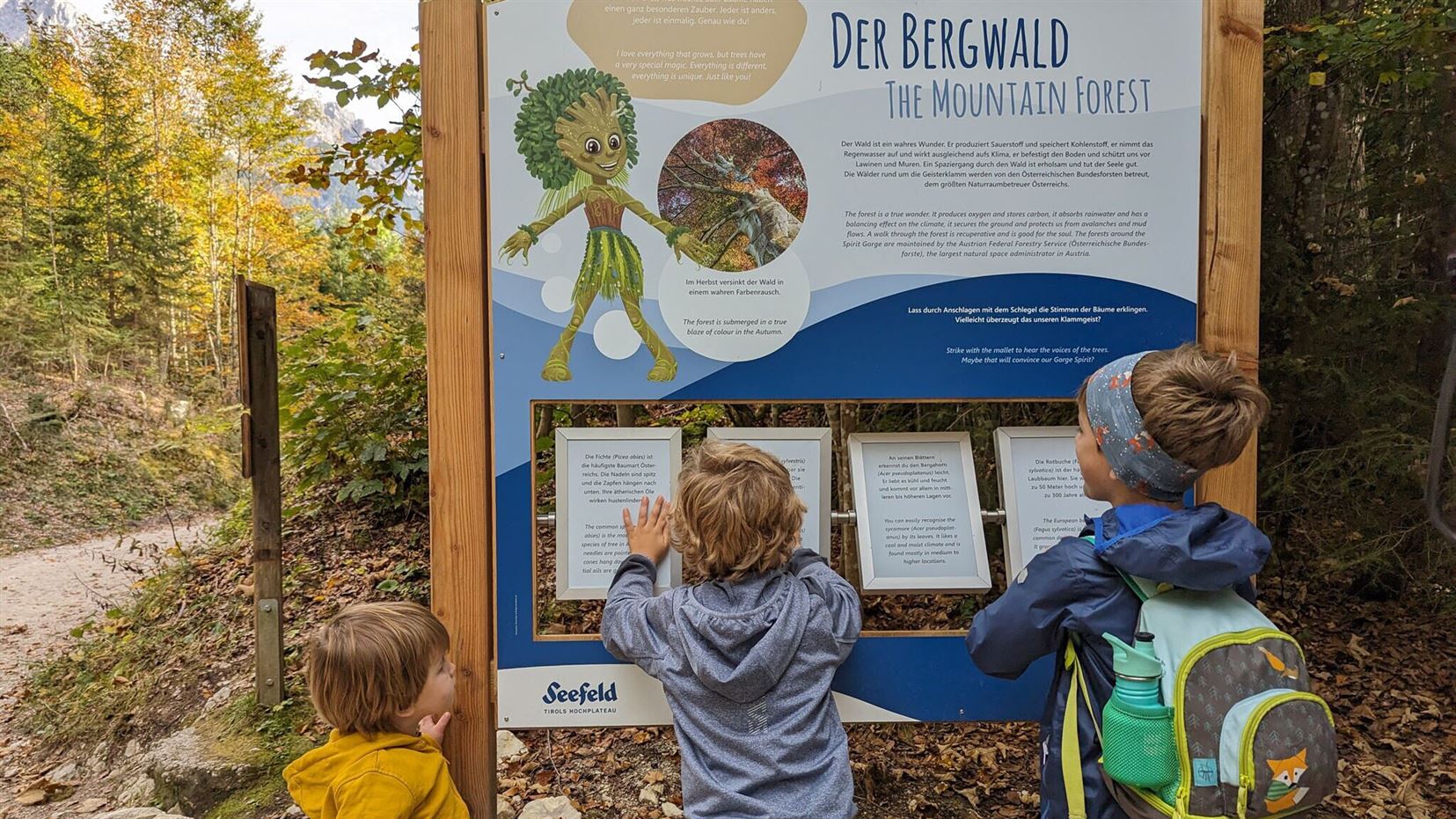 The path goes straight towards the Leutasch Spirit Gorge and, after about 200 meters, opens up to a fork to the left, leading down along the Leutascher Ache. Once you reach the bottom, a circular trail opens up, letting you fully experience the beauty of the area.