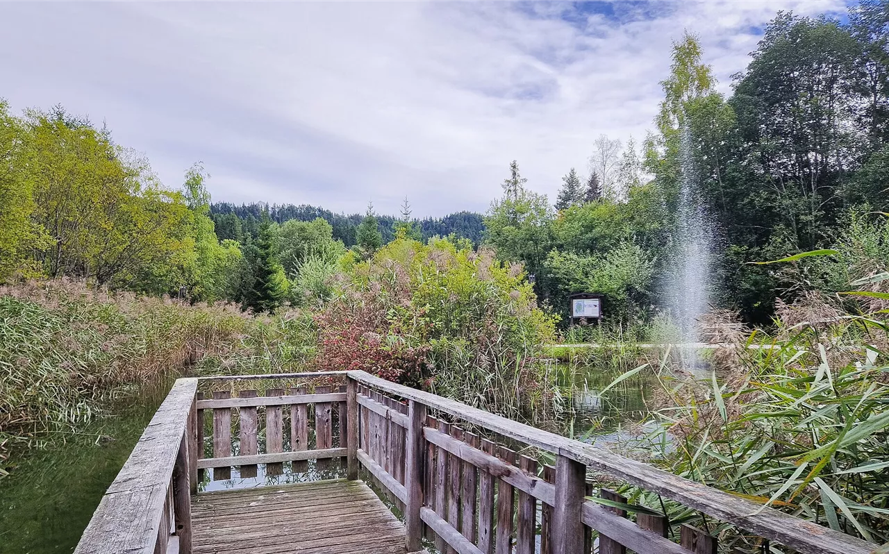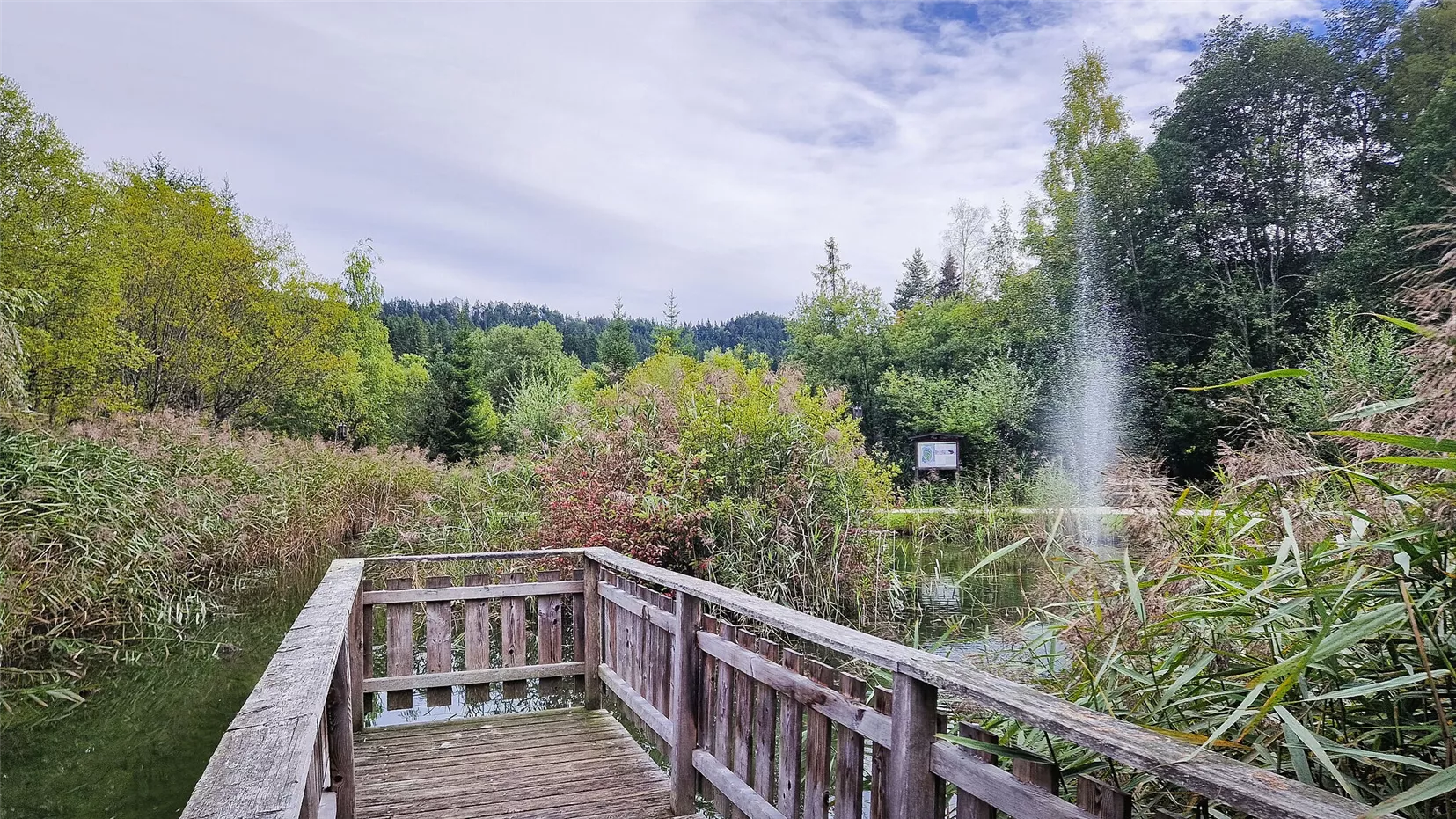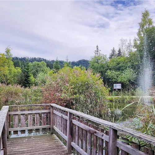 Our starting point is the music pavilion in Weidach, which can be reached either by car (P15) or via the Weidach Zentrum bus stop. Take a short loop around the natural biotope behind the pavilion before following the signs towards “Weidachsee” at the road junction. You will pass the Katzner Chapel and then turn left again opposite the entrance of the Quellenhof hotel. The path leads you directly to the shore of the idyllic Weidachsee.
