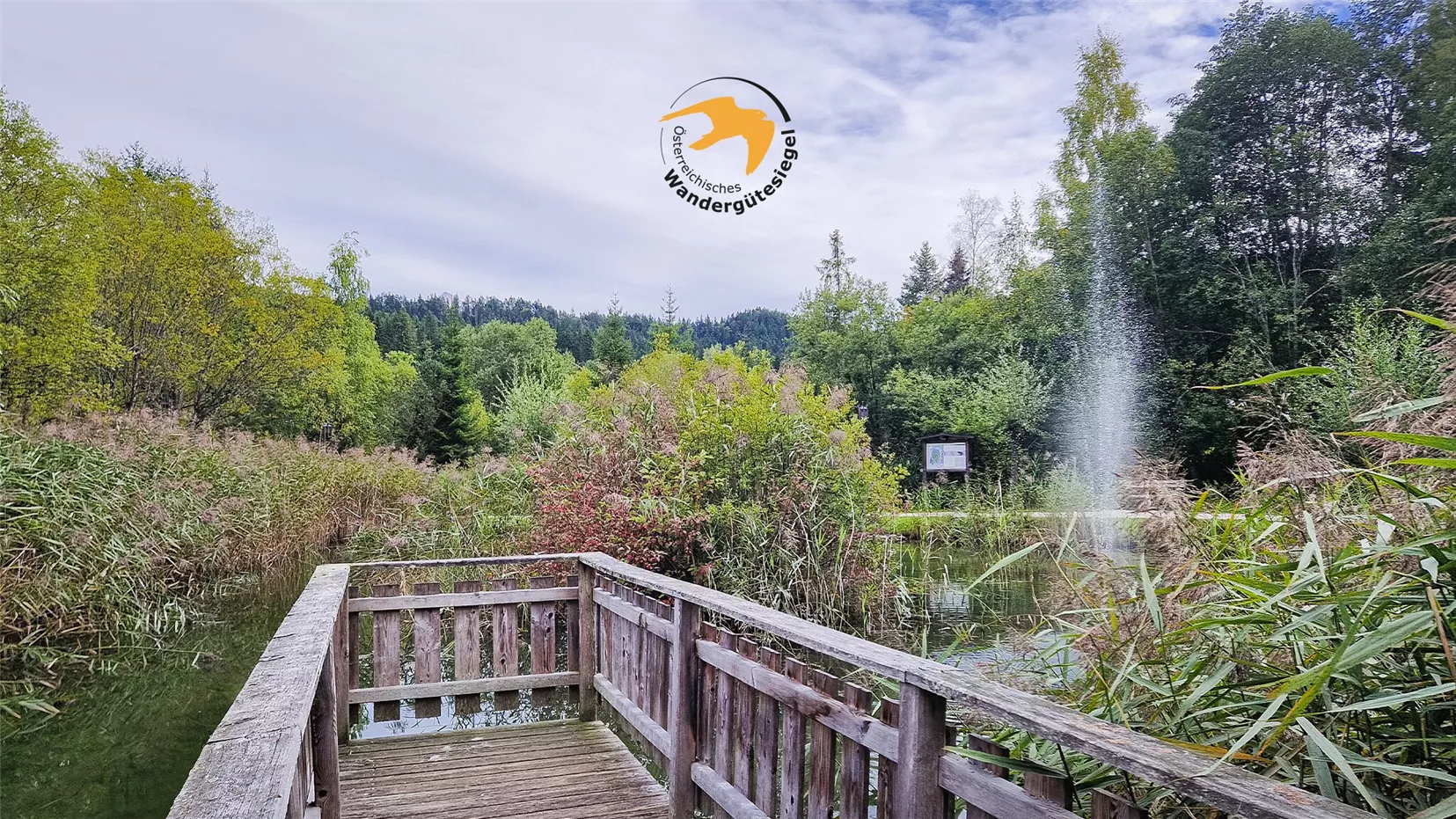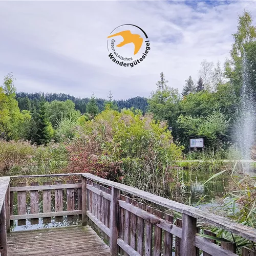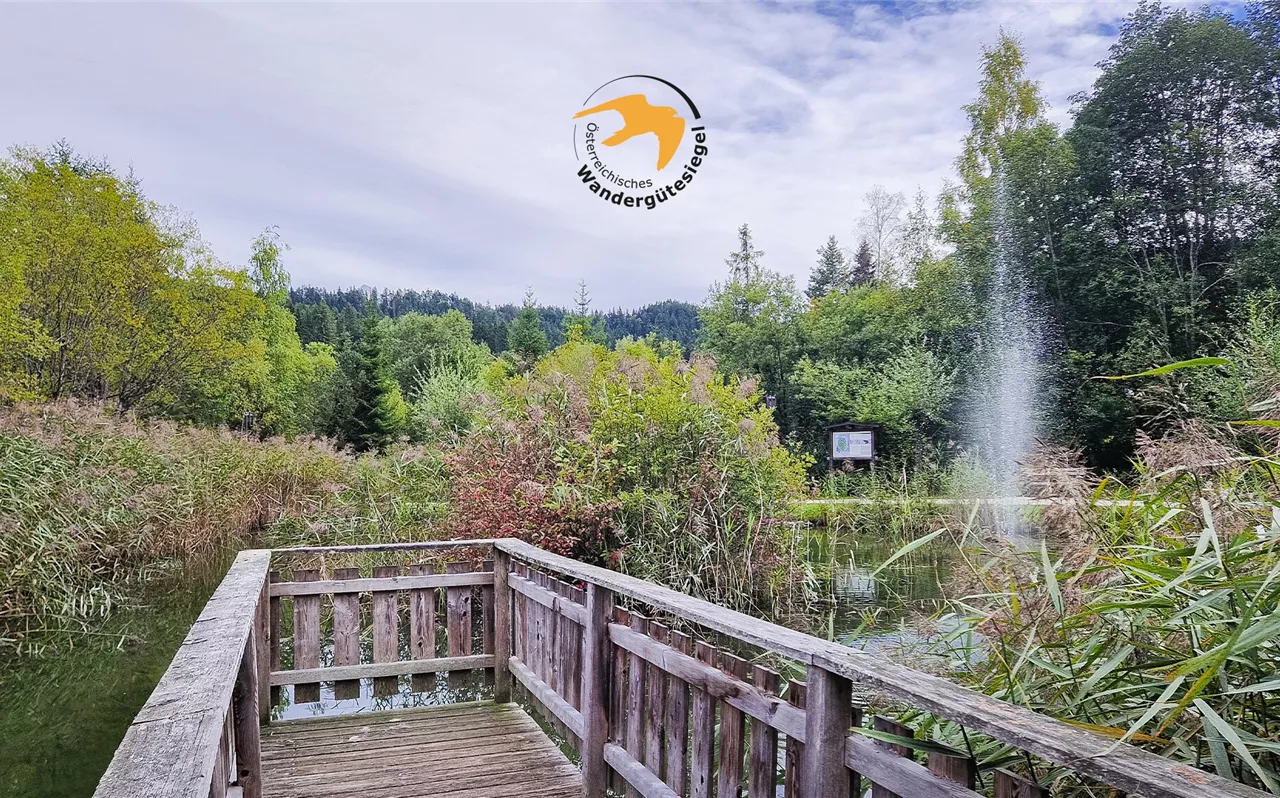 Our starting point is the music pavilion in Weidach, which you can reach by car (P15) or via the Weidach Zentrum bus stop. Enjoy a short loop around the natural biotope behind the pavilion before following the signpost towards “Weidachsee” at the road junction. Pass the Katzner Chapel and turn left again opposite the main entrance of Hotel Quellenhof. Follow the path until you reach the idyllic shore of Lake Weidachsee.