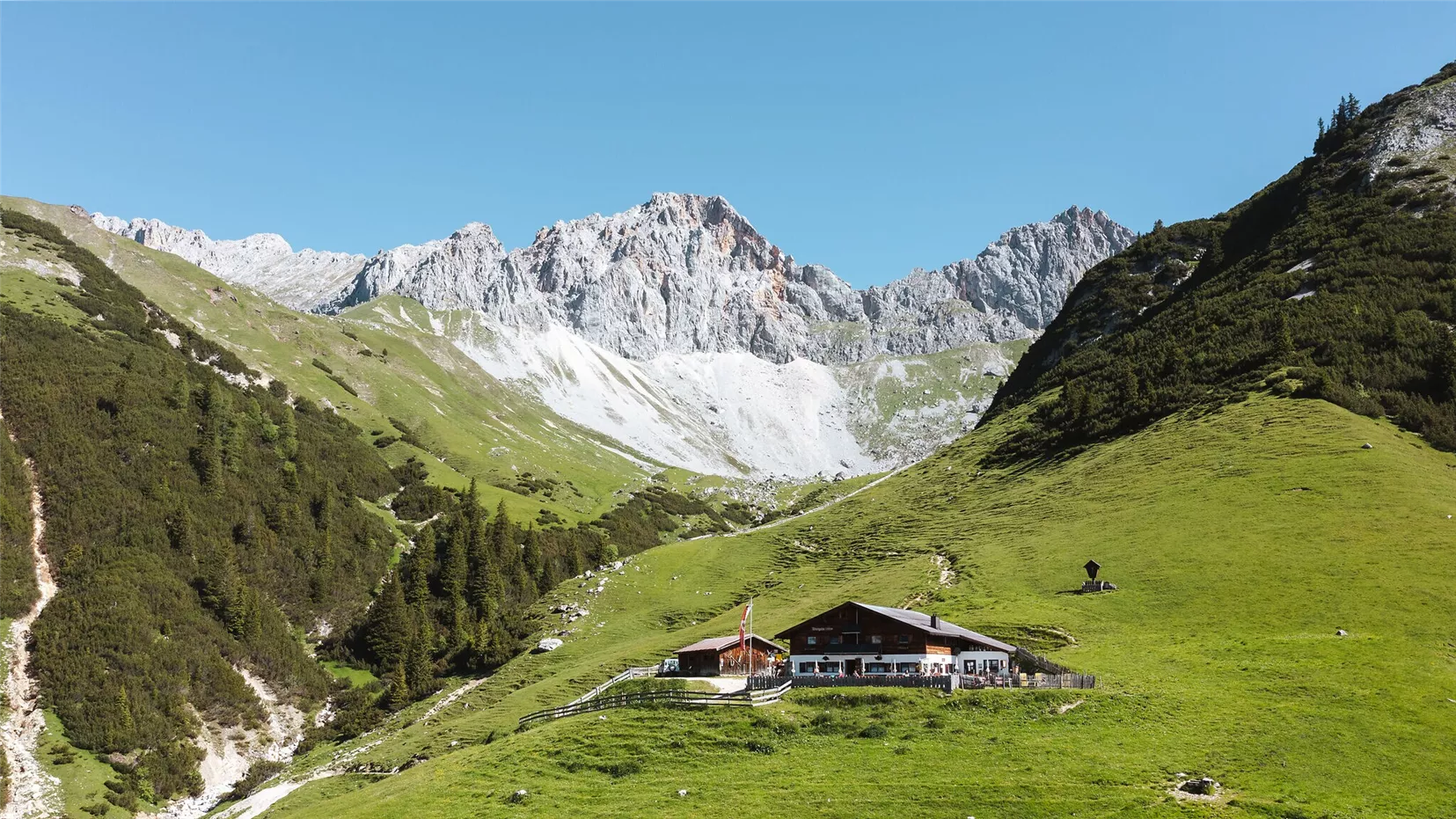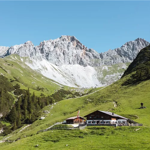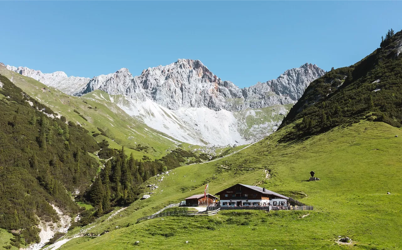 At the junction to the Waldsteig (forest trail), there are two options: You can either stay on the forest road (Path No. 9) or take the steeper forest trail. Both routes lead directly to Wangalm, which offers regional specialties and stunning views of Gaistal Valley, perfect for a break.