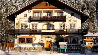 Benvenuti nel nostro "Hotel 0 Stelle Weisses Rössl" a Leutasch, in Tirolo. Nel 2005, il proprietario Roberto ha acquisito il tradizionale albergo Leutascher Weisses Rössl, ma in uno stato fatiscente. Con le proprie forze e limitate disponibilità finanziaria, Roberto, insieme all'ospite Katarina, ha ricostruito l'albergo ai piedi del Gehrenspitze nelle Alpi Wetterstein e lo ha fatto risplendere di nuova luce.