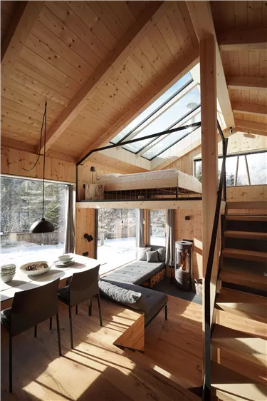 „fluss.bett“ – il tuo rifugio sull'acqua. Architettura incontra natura: aperto, accogliente, discreto. Arrivare e sentirsi a casa. Ti aspetta un concetto di monolocale attentamente zonato, realizzato con amore: grandi superfici vetrate con vista sulla natura, una gigantesca finestra sopra il letto permette di dormire sotto il cielo stellato. La sauna panoramica con vista sul fiume e il bagno nel proprio buco di ghiaccio nell'Isar perfezionano l'esperienza in questo luogo dove il tempo scorre più lentamente.