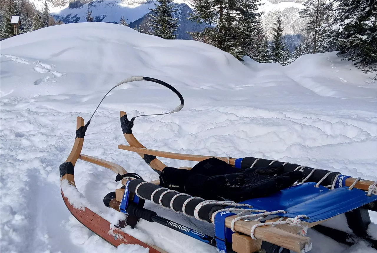 Equipaggiamento richiesto: Slitta manovrabile, casco, abbigliamento caldo (inclusi guanti), occhiali da sci o da sole, scarpe con buona aderenza, eventualmente ramponi con punte corte. La slitta e il casco possono essere noleggiati in loco con pagamento in contante.