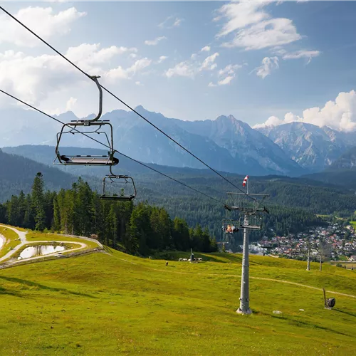 In estate, il Gschwandtkopf fiorisce in colori vivaci e attrae ospiti in bicicletta e escursionisti nei freschi boschi e nei rigogliosi prati alpini. Dalla metà di giugno fino alla metà di ottobre, in caso di bel tempo, la seggiovia estiva rende più facile la salita alla cima - e se lo desideri, puoi anche portare con te la tua bici.