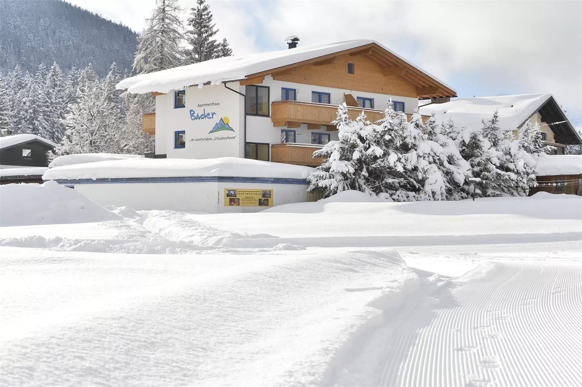 Het appartementenhuis Bader heeft een rustige en zonnige ligging, in de buurt van wandelpaden en langlauf-parcours ("loipe"). Leutasch is 4 km van Seefeld en 6 km van Mittenwald verwijderd. Het huis heeft 10 comfortable appartementen van 25 - 45m² met balkon en terras. Een sauna, stoombad en infrarood-cabine staan tevens ter beschikking. De ligging is ook ideaal voor uitstapjes naar bijv. Garmisch 35 km, Innsbruck 30 km, Zuidtirol 80 km, München 100 km. Zowel de beginner als de prof kan sportief zijn - onze troeven zijn wandelen en langlaufen - fietsen is ook ideaal voor de familie of de veeleisende biker!