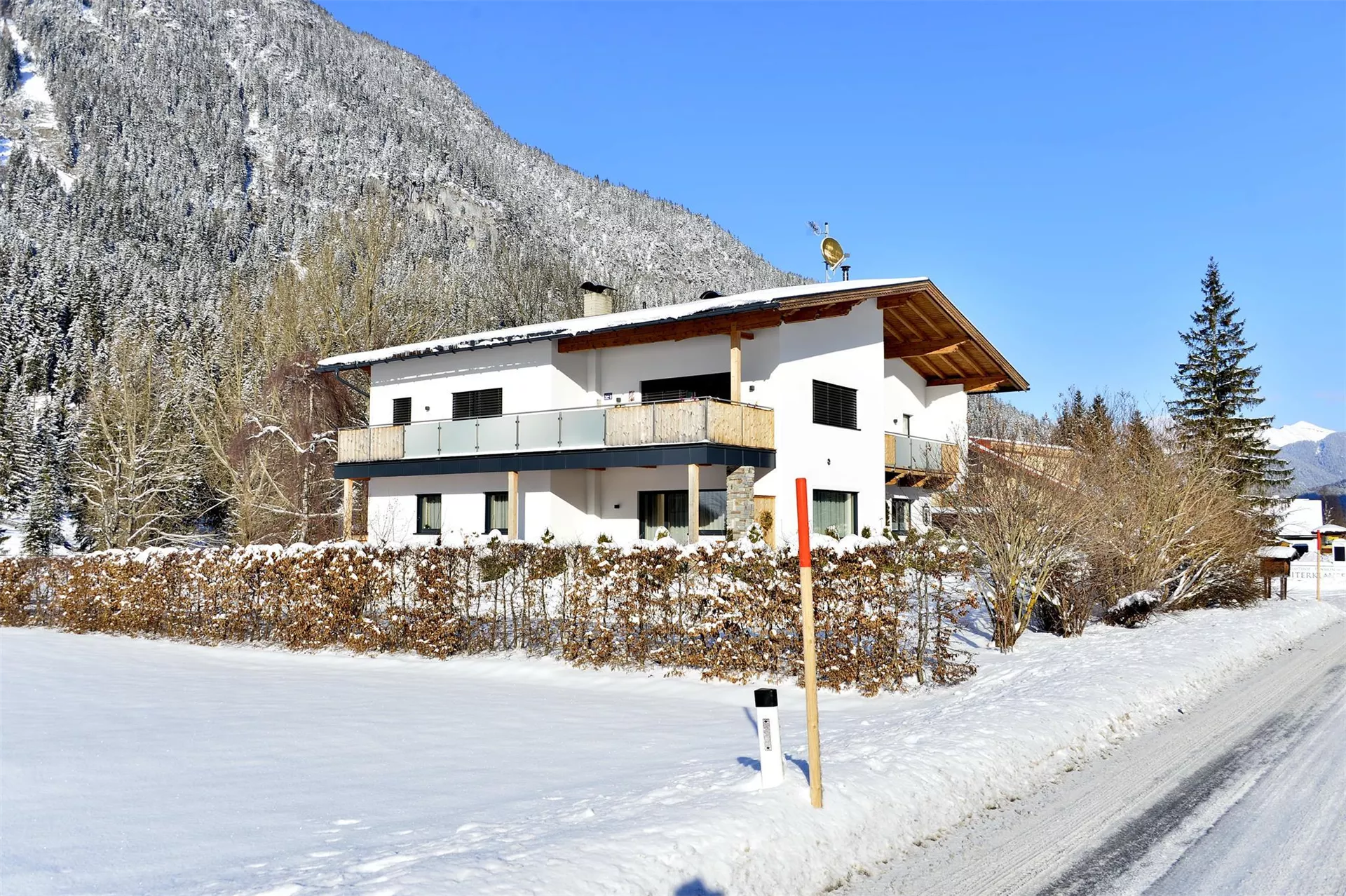 Onze appartementen zijn ingericht in Tyroler stijl en comfortabel uitgerust: kleuren-tv met SAT-systeem (binnenlandse en buitenlandse zenders), radio, vloerverwarming (indien nodig wordt er ook in de zomer verwarmd). Ons appartement heeft een eigen, afgesloten, ruim balkon met tafel, tuin- en ligstoelen. U kunt ook graag gebruikmaken van onze royale tuin.